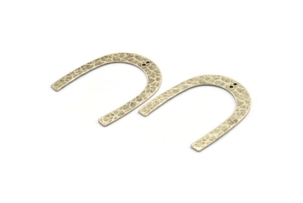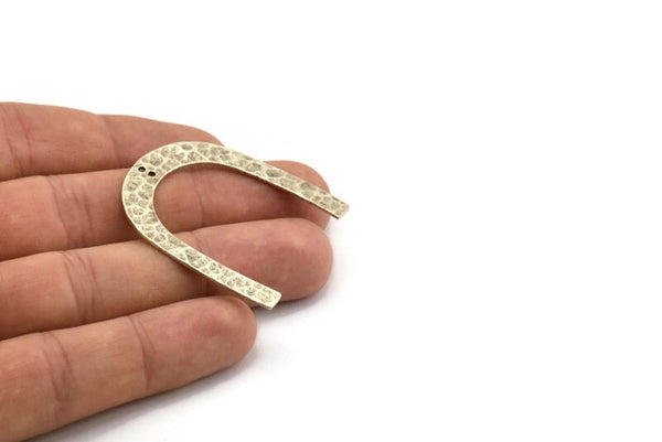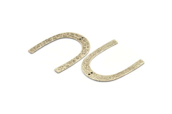 Silver Geometric Charm, 2 Hammered Antique Silver Plated Brass U Shaped Pendants With 2 Holes, Charms, Findings (42x36x1mm) N0931 H0992