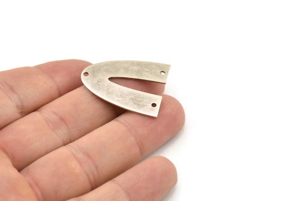 Antique Silver Plated Brass V Shaped Charms With 3 Holes