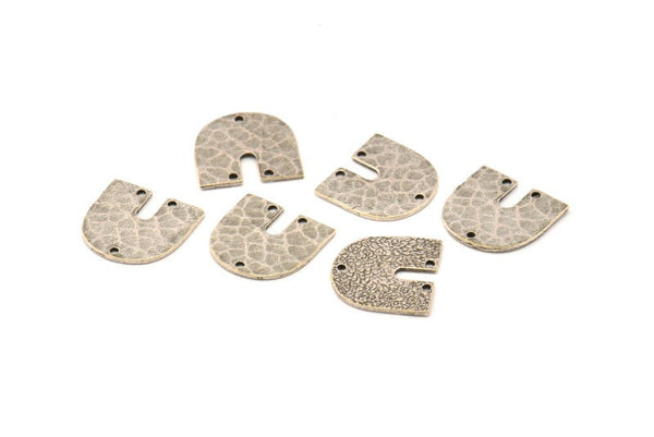 Hammered Antique Silver Plated Brass U Shaped Pendants With 3 Holes