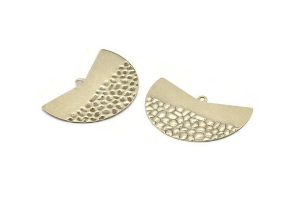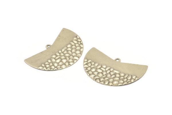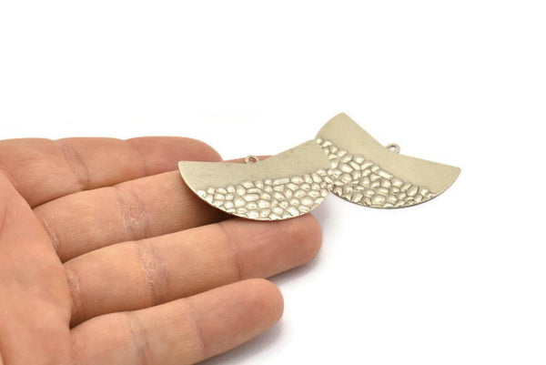 Textured Antique Silver Plated Brass Fan Charms With 1 Loop, Pendants