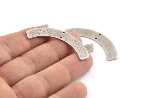 Textured Antique Silver Plated Brass Semi Circle Blanks With 2 Holes