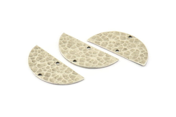 Silver Half Moon, 2 Hammered Antique Silver Plated Brass Semi Circle Blanks With 2 Holes (34x16x1mm) N0995 H1076