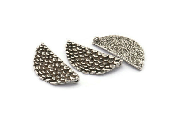 Antique Silver Plated Brass Mermaid Semi Circle Pendants With 2 Loops