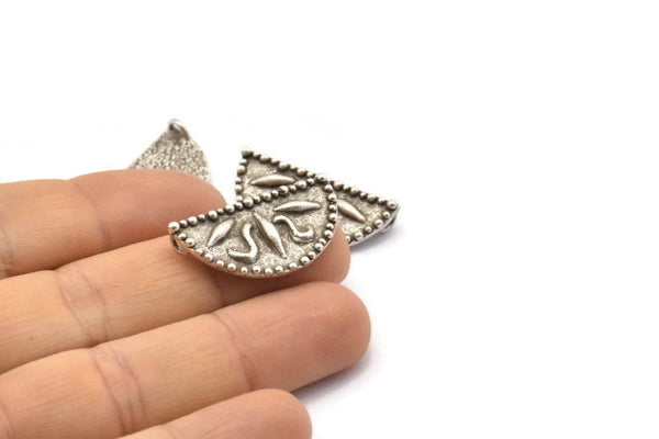 Antique Silver Plated Brass Semi Circle Pendants with 2 Loops
