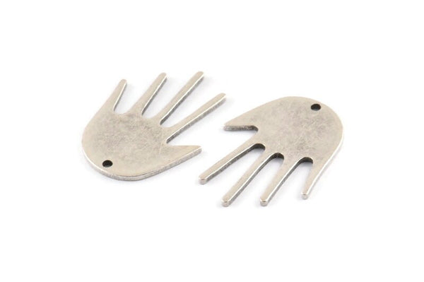 Antique Silver Plated Brass Hand Charms With 1 Hole