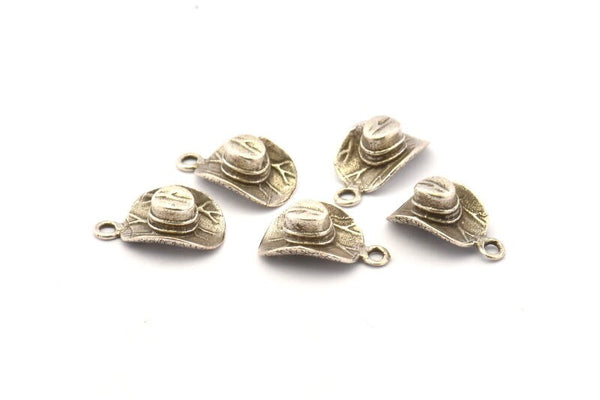 Silver Hat Charm, 4 Antique Silver Plated Brass Cowboy Hat Charm Earrings With 1 Loop, Findings (17x10mm) N0900