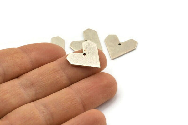 Silver Heart Charm, 8 Antique Silver Plated Brass Heart Charms With 1 Hole, Earrings, Findings (17x18x1mm) D1009 Q0943
