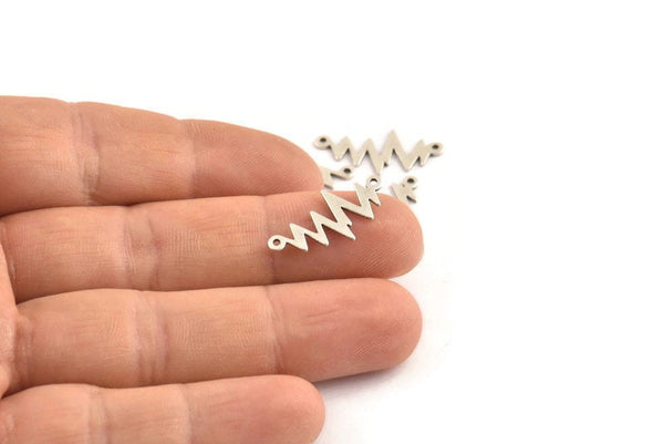 Silver Heart Rhythm Connector, 12 Antique Silver Plated Brass Heart Rhythm Shaped Connectors With 2 Loops (22x10.5x0.75mm) E072 H1595