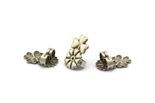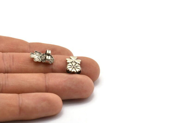 Antique Silver Plated Brass Flower Earring Back Stopper, Earring Stud Back Stoppers