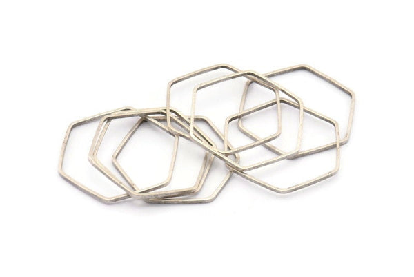 Silver Hexagon Ring Charm, 24 Antique Silver Plated Brass Hexagon Shaped Ring Charms (22x0.6x1mm) Bs 1205 H0103