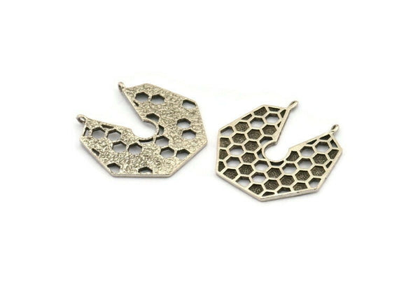 Antique Silver Plated Brass Honeycomb Pendants With 2 Loops