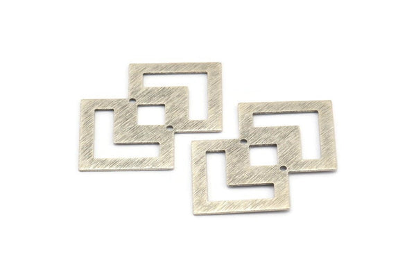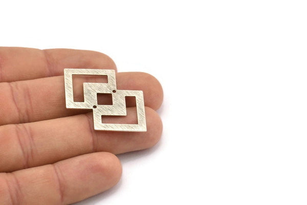 Silver Irregular Charm, 4 Textured Antique Silver Plated Brass Irregular Connectors With 2 Holes (42x28x0.60mm) D1123