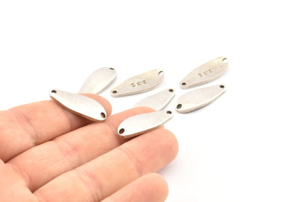 Silver Irregular Charm, 6 Antique Silver Plated Brass Marquise Connectors With 2 Hole, Findings (24x9x1.5mm) D1080