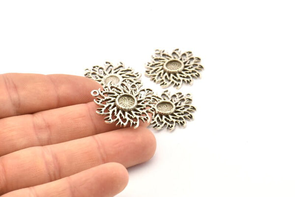 Antique Silver Plated Brass Rosette Charms With 1 Loop - Pad Size : 6mm