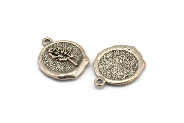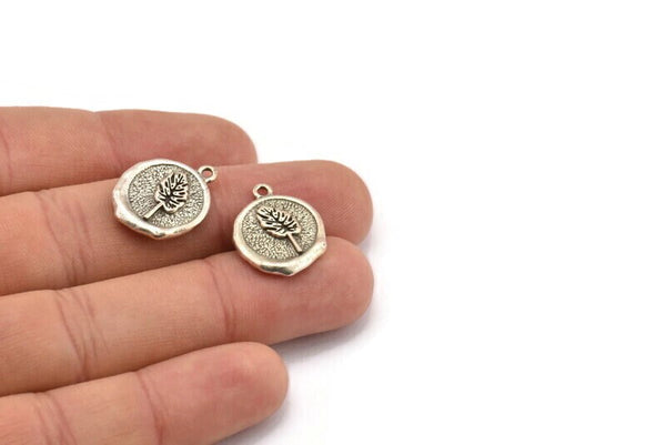 Antique Silver Plated Brass Leaf Charm Earrings With 1 Loop