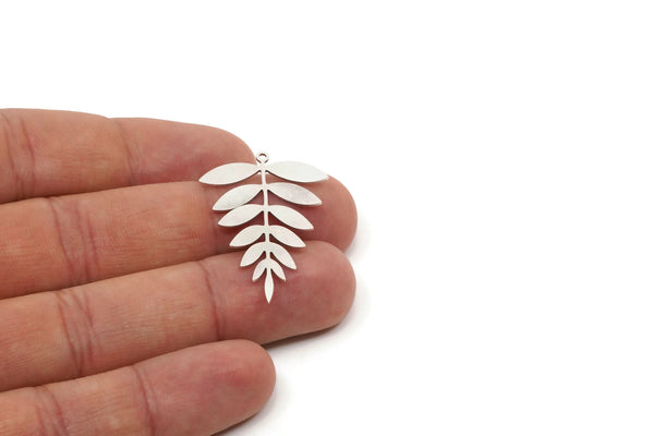 Antique Silver Plated Brass Acacia Leaf Charms With 1 Loop