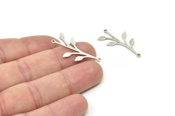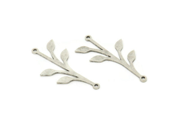 Antique Silver Plated Brass Leaf Charms With 2 Loops