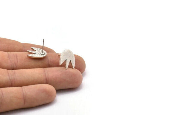 Antique Silver Plated Brass Lotus Flower Stud Earrings