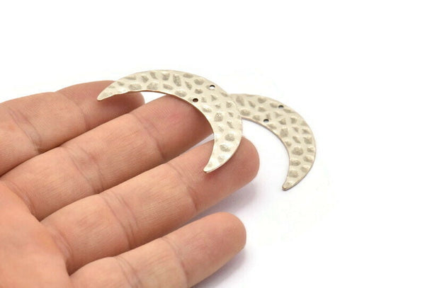 Hammered Antique Silver Plated Brass Horn Charms With 2 Holes