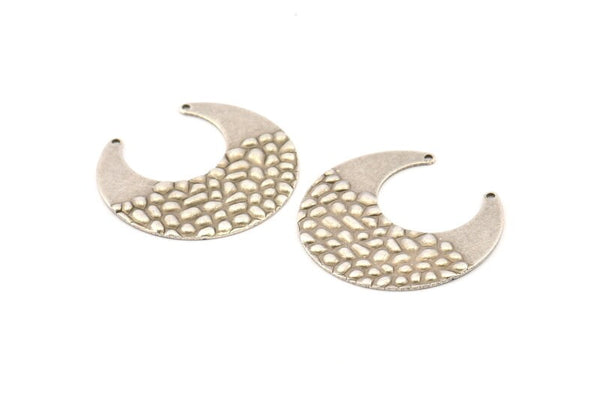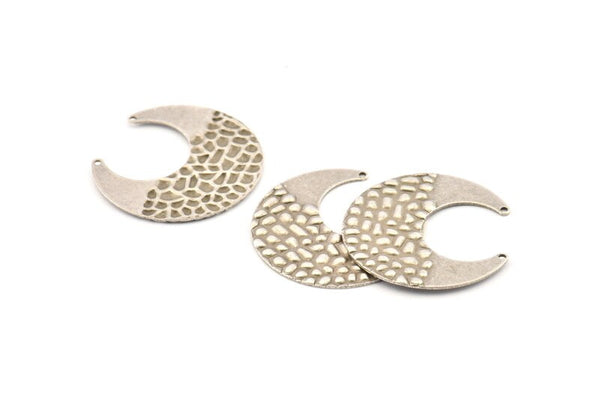 Silver Moon Charm, 6 Textured Antique Silver Plated Brass Horn Charms With 2 Holes, Findings, Connectors (30x13.5x0.60mm) D955