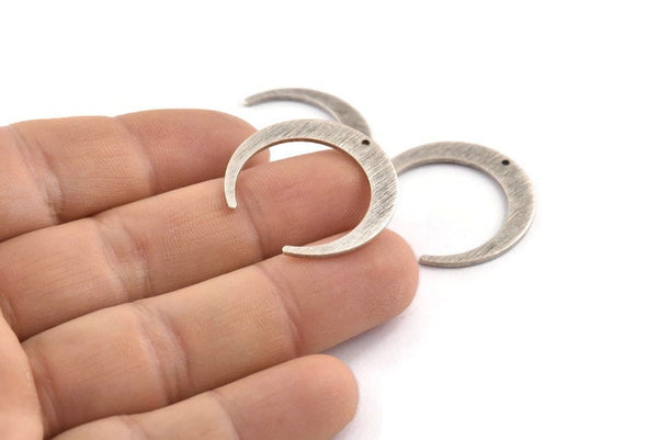 Silver Moon Charm, 6 Textured Antique Silver Plated Crescent Moon Charms With 1 Hole (27x25x1mm) D931 H1390