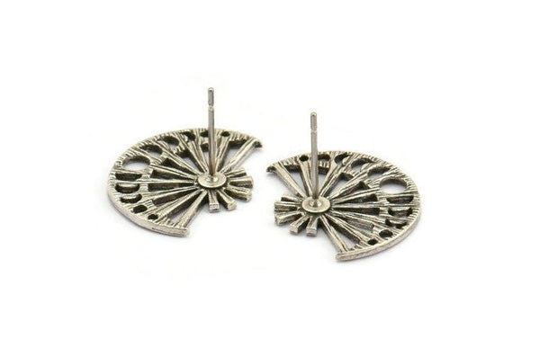 Antique Silver Plated Brass Moon Phases Stud Earrings