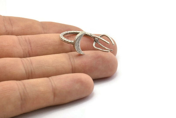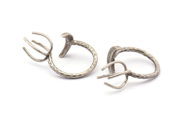 Silver Moon Ring, 2 Antique Silver Plated Brass 4 Claw Ring For Natural Stones N1026 H1263