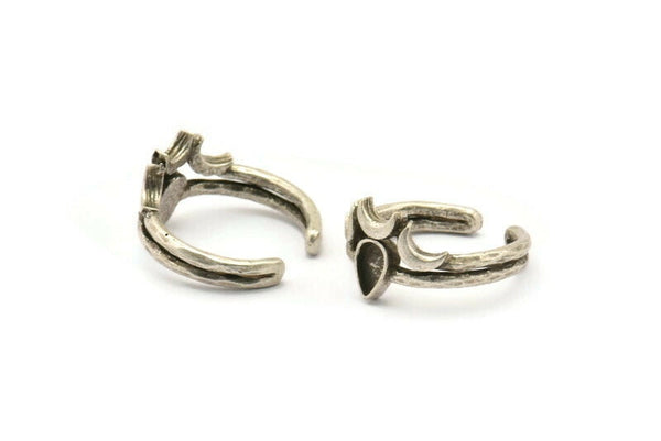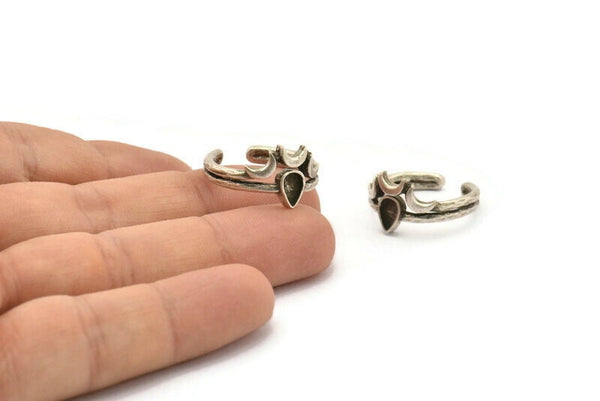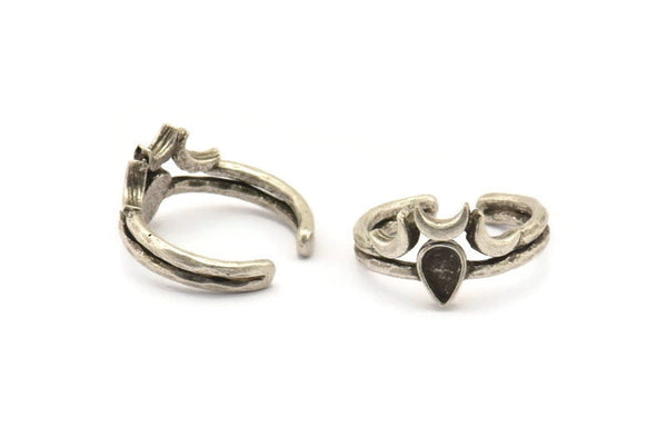 Antique Silver Plated Brass Drop Ring With 1 Stone Settings - Pad Size 5x4mm