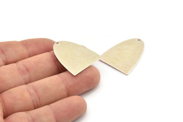 Silver Oval Charm, 2 Antique Silver Plated Brass Half Ellipse Shape Charms With 1 Hole, Pendants, Earrings, Findings (28x24x0.70mm) B0213