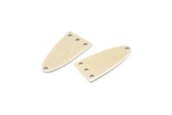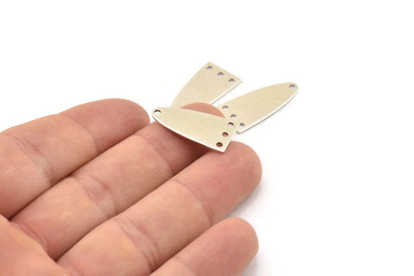 Antique Silver Plated Brass Half Ellipse Shape Charms With 4 Holes