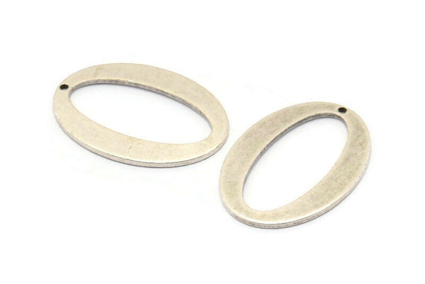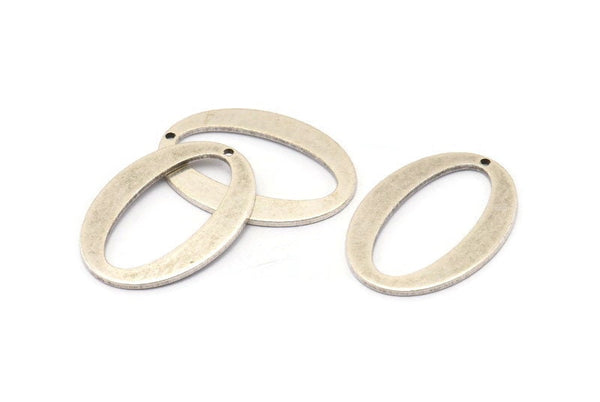Antique Silver Plated Brass Oval Charms With 1 Hole