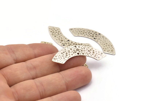 Silver Rectangle Bar, 6 Hammered Antique Silver Plated Brass Rectangle Connectors With 2 Holes (46x9x0.80mm) D934