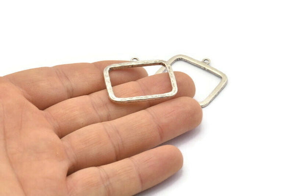 Hammered Antique Silver Plated Rectangle Pendants With 1 Loop