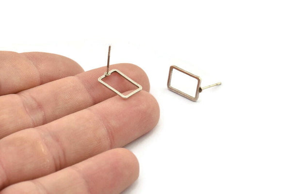 Antique Silver Plated Brass Rectangle Stud Earrings