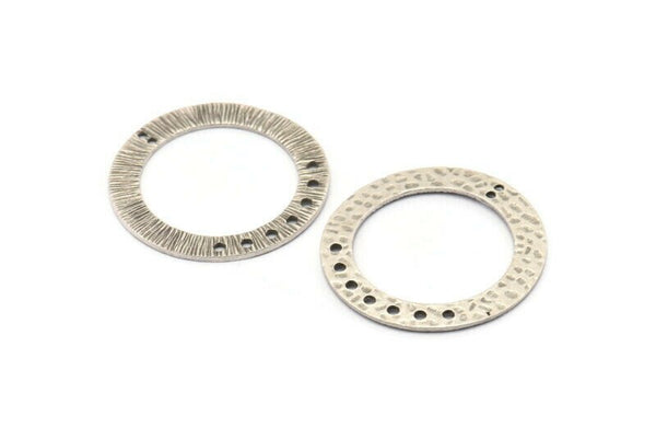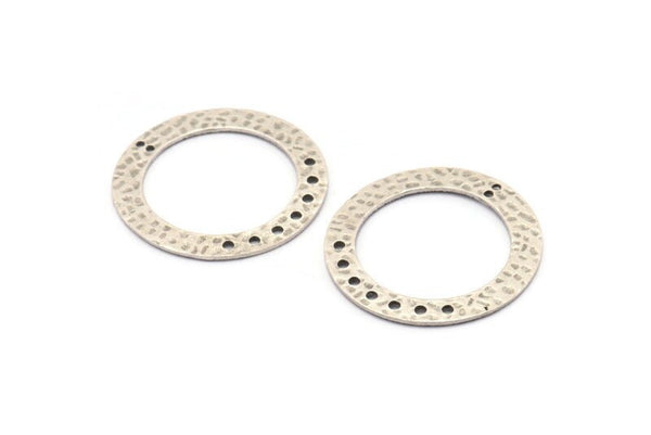 Hammered Antique Silver Plated Brass Round Charms With 9 Holes