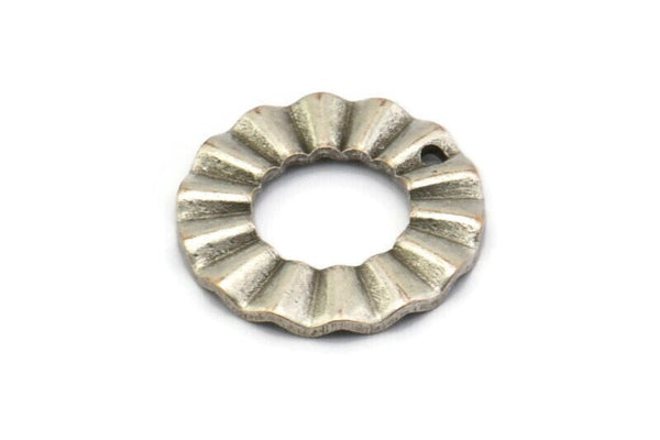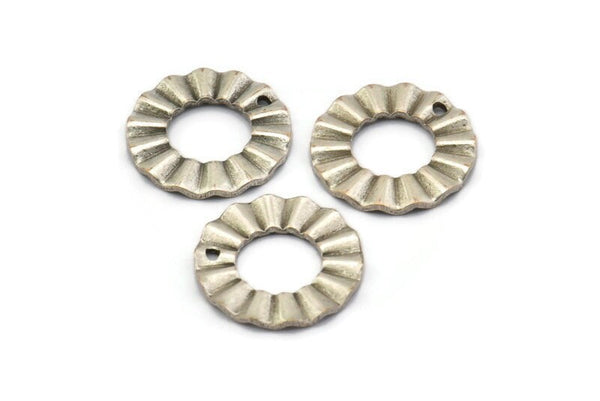 Silver Ring Charm, 8 Antique Silver Plated Brass Wavy Round Charm Earrings With 1 Hole, Findings (18x1mm) D889