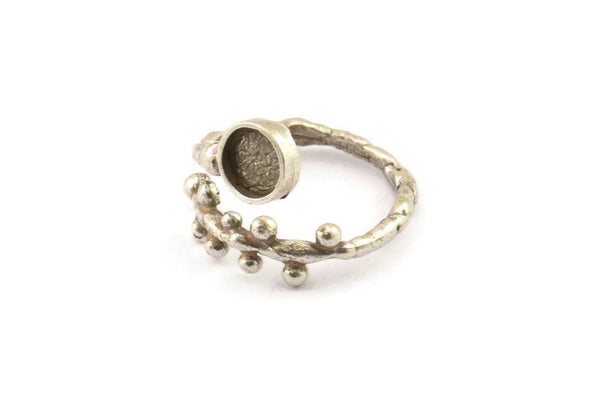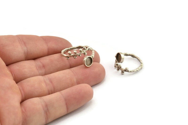 Silver Ring Setting, 2 Antique Silver Plated Brass Adjustable Rings With 1 Stone Settings - Pad Size 6mm N2533 H1630