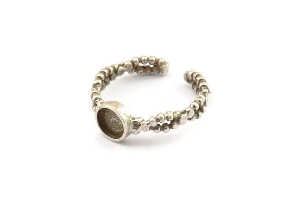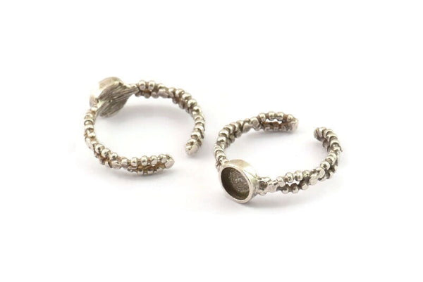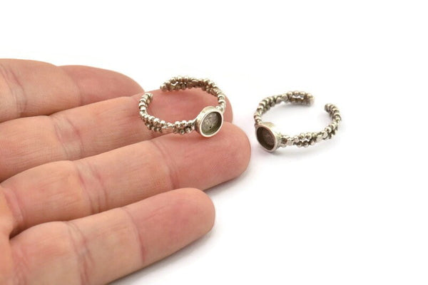 Silver Ring Setting, 2 Antique Silver Plated Brass Adjustable Rings With 1 Stone Settings - Pad Size 6mm N2549 H1636