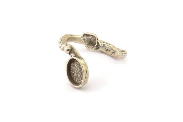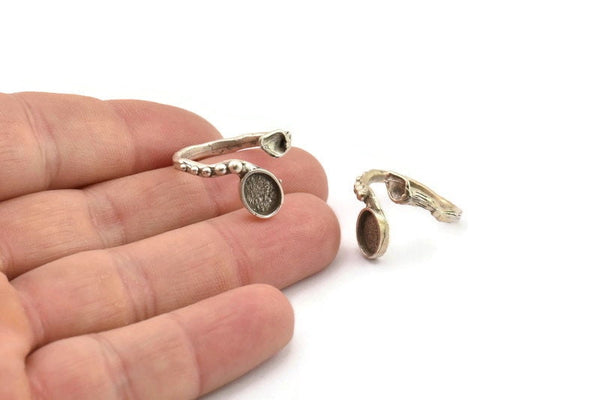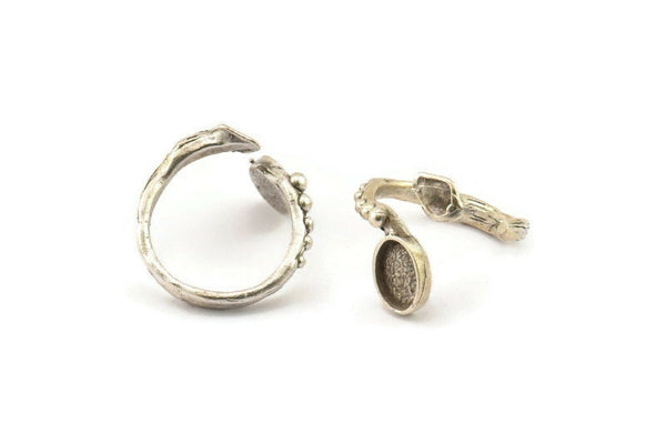 Silver Ring Setting, 2 Antique Silver Plated Brass Adjustable Rings With 1 Stone Settings - Pad Size 6x8mm N2536 H1669