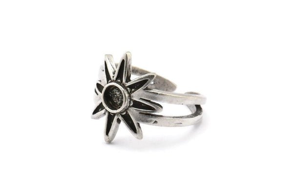 Antique Silver Plated Brass Flower Ring With 1 Stone Setting - Pad Size 4mm