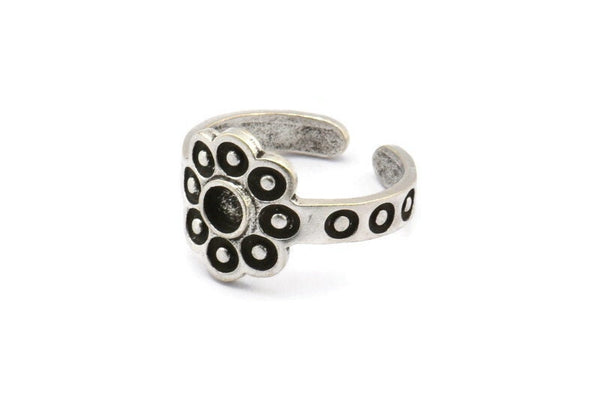 Antique Silver Plated Brass Flower Ring With 1 Stone Setting - Pad Size 4mm
