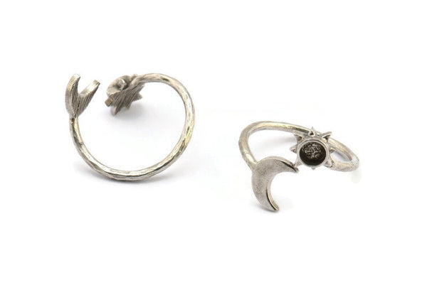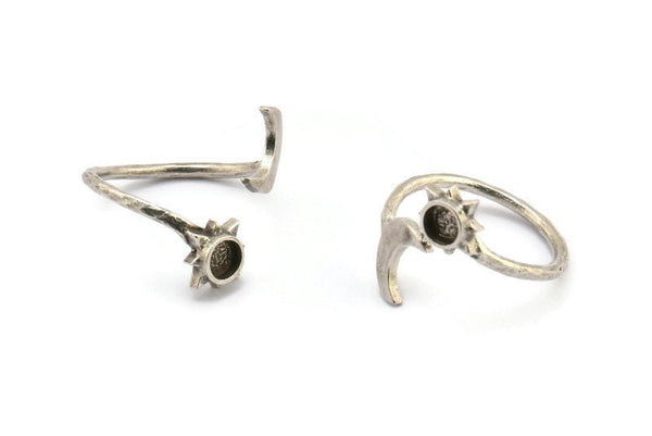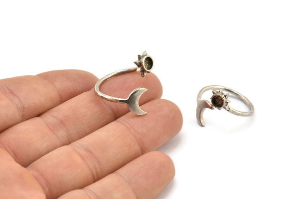Antique Silver Plated Brass Moon And Sun Rings With 1 Stone Setting - Pad Size 4mm