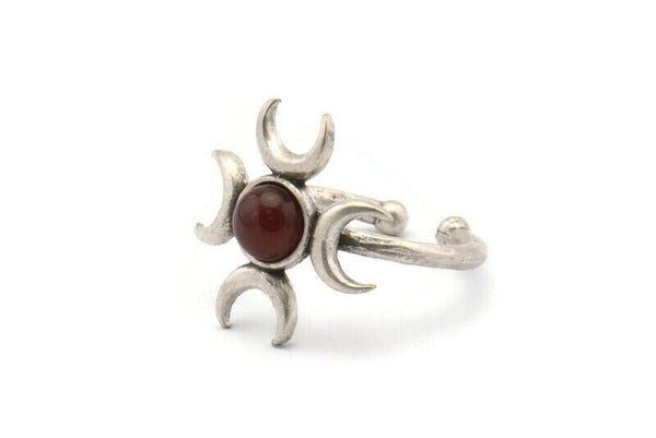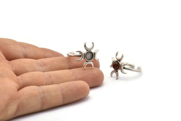 Antique Silver Plated Brass Moon Ring With 1 Stone Setting - Pad Size 6mm