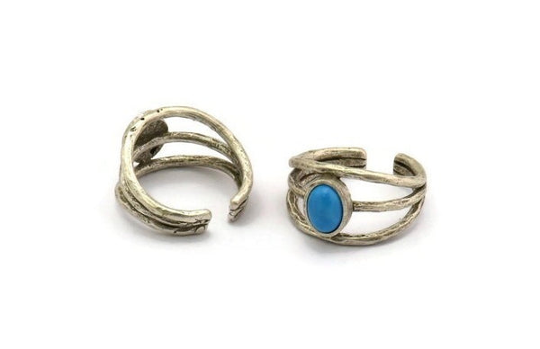 Silver Ring Setting, Antique Silver Plated Brass Adjustable Ring With 1 Stone Setting - Pad Size 8x6mm N1264