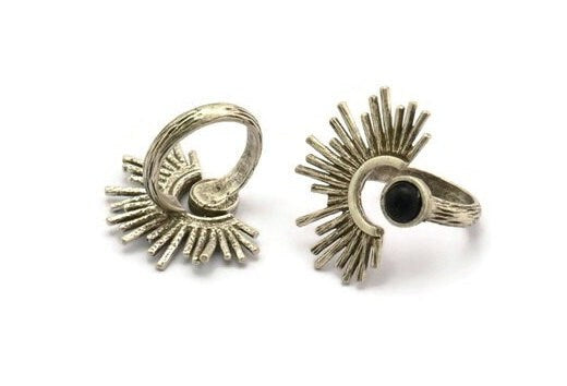 Antique Silver Plated Brass Adjustable Ring With 1 Stone Settings