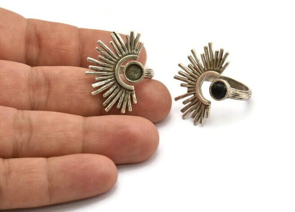 Silver Ring Setting, Antique Silver Plated Brass Adjustable Ring With 1 Stone Settings - Pad Size 6mm N1262 H0980