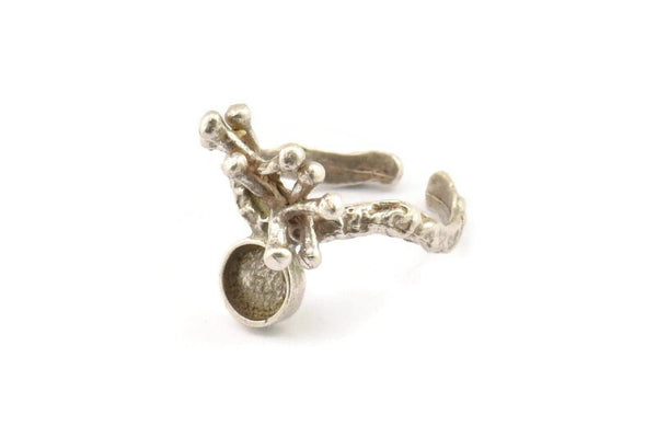 Antique Silver Plated Brass Adjustable Rings With 1 Stone Settings