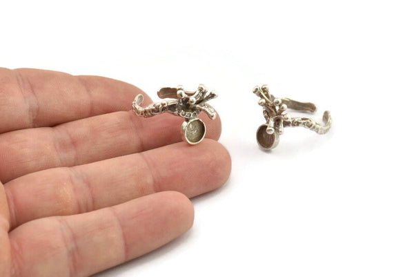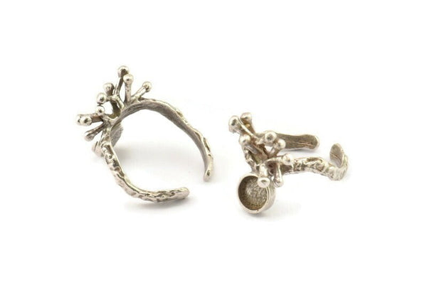 Silver Ring Setting, Antique Silver Plated Brass Adjustable Rings With 1 Stone Settings - Pad Size 6mm N2544 H1661