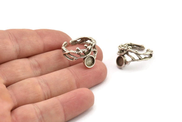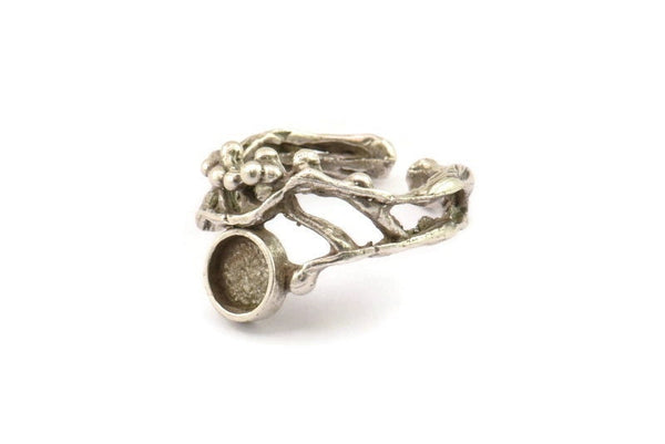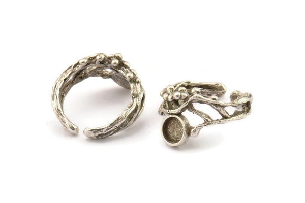 Antique Silver Plated Brass Adjustable Rings With 1 Stone Settings