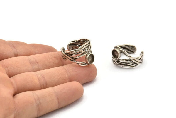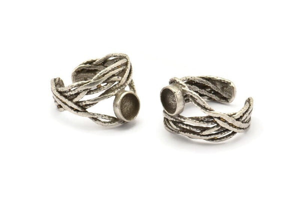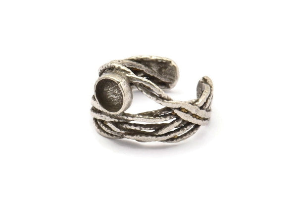 Silver Ring Setting, Antique Silver Plated Brass Duke Ring With 1 Stone Settings - Pad Size 6mm N1895 H1555
